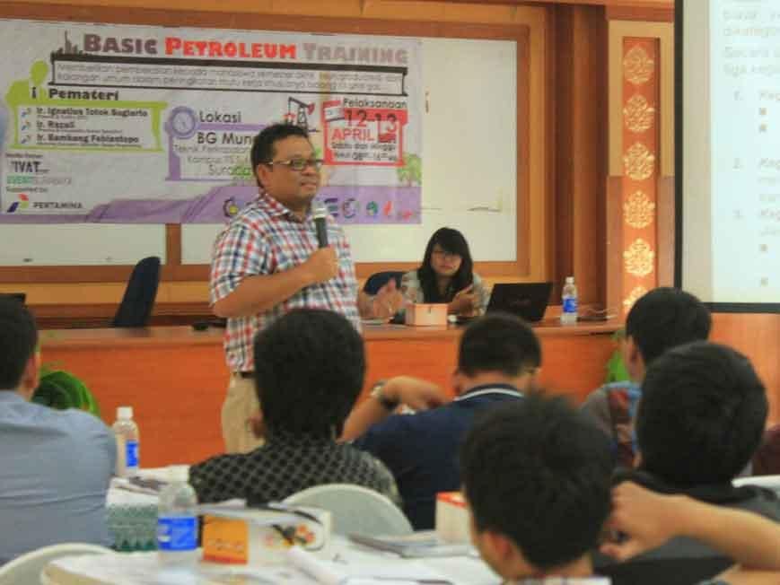 Untuk kesekian kalinya, ITS mendapat kunjungan dari pakar perminyakan nasional. Kali ini, para ahli perminyakan tersebut ialah Ir Bambang Febiantopo, Ir Rozali, dan Ir Ignatius Totok Sugiarto. Mereka berkunjung ke kampus perjuangan guna menjadi pemateri dalam acara Basic Petroleum Training (BPT) 2014. Kegiatan yang berlangsung selama dua hari sejak Sabtu (12/4) tersebut, merupakan program kerja dari Himpunan Mahasiswa D3 Teknik Kimia (Himadekkim) ITS.