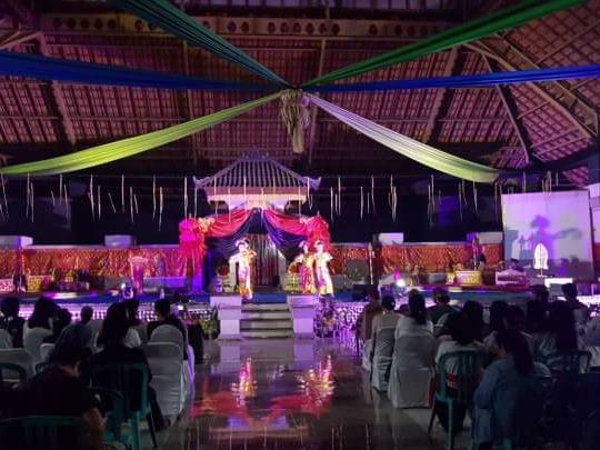 Gemerlap lampu sorot bergantian memenuhi pelataran Pura Segara Kenjeran, Sabtu (18/3). Lantunan tabuh gamelan khas Bali turut mengisi keheningan malam. Kostum cantik para penari berkelak kelok mengikuti gerak indah