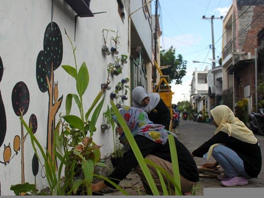 Minimnya ketersediaan lahan terbuka di Kota Surabaya tak menyurutkan semangat Himpunan Mahasiswa Teknik Lingkungan (HMTL) ITS untuk menggalakkan penghijauan. Mereka melatih masyarakat membangun Vertical Planting (VP) atau penanaman vertikal