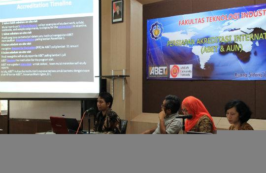 Jurusan Teknik Industri mengajak jurusan lain persiapkan akreditasi internasional melalui diskusi, Jumat (19/12). Adapun Badan Akreditasi Internasional yang menjadi sasaran Fakultas Teknologi Industri adalah Accreditation Board for Engineering and