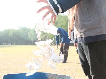 Setelah pembukaan Generasi Integralistik (Gerigi) ITS 2013, Jumat (30/8), mahasiswa baru kembali dikawal untuk meninggalkan taman alumni dan melaksanakan sholat Ashar. Setelah taman alumni kosong, terlihatlah sampah tisu yang