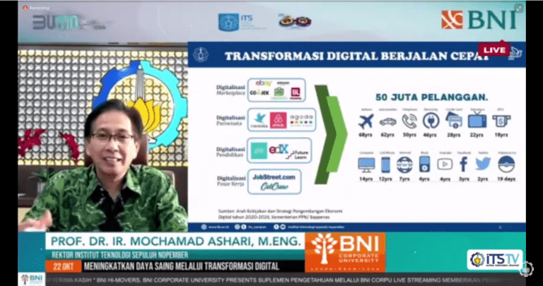 Kampus ITS, ITS News – Transformasi digital membawa pengaruh besar terhadap dunia usaha di Indonesia. Oleh sebab itu, penting bagi pelaku usaha untuk meningkatkan daya saingnya. Berikut, Institut Teknologi