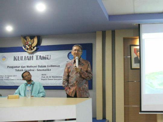 Departemen Teknik Geomatika Institut Teknologi Sepuluh Nopember (ITS) menggelar kuliah tamu bertajuk Status Pembangunan Informasi Geospasial di Indonesia, Selasa (22/8). Kali ini Prof. Dr. Ir. Hasanuddin Z Abidin, M.Sc.Eng,