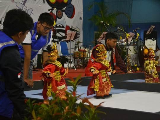 Robot penari ITS VIROSE melakoni pertandingan semifinalnya pada KRSTI 2017, Minggu (9/7). Dari dua sesi penampilan, robot dengan kostum merah dan emas ini memperoleh poin rata-rata 65,67. Hasil ini