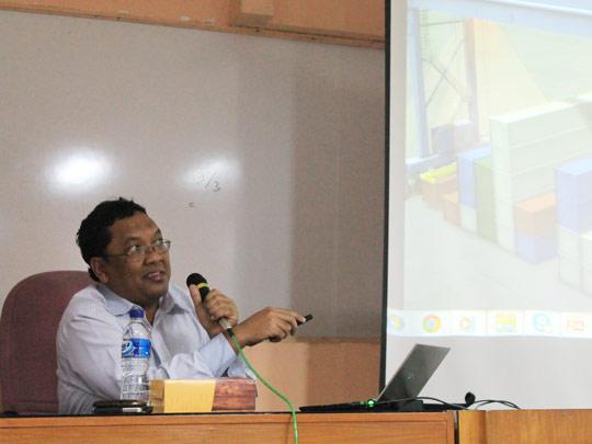 Bukan hanya handal di dunia otomotif, Jurusan Teknik Mesin pun merambah pengetahuan di dunia konstruksi pelabuhan. Tidak ingin setengah-setengah, Kuliah Tamu (Kultam) oleh Prasetyadi, Direktur Utama PT Terminal Teluk