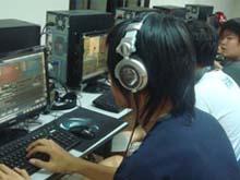 Para peserta terlihat serius menatap layar monitor untuk mengatur strategi. Tampak wajah tegang dari masing-masing tim. Dor! dor! dor! terlihat senyum dari salah satu peserta ketika berhasil menembak lawan.