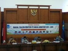 Kamis (26/8), temu dan kenal bakal calon rektor (bacarek) yang dihelat panitia pemilihan calon rektor (PPCR) ITS memasuki tahap akhir. Jika sebelumnya tujuh bacarek lain telah beradu visi misi,