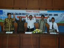 Pada Rabu (25/8), Temu Kenal Bakal Calon Rektor (bacarek) 2010/1015 memasuki hari kedua. Prof Dr Ir Imam Robandi MT, Prof Noor Endah Msc Phd, dan Dr Ir Sumarno MEng