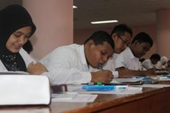 Seribu Mahasiswa Baru (Maba) 2010 berjajar antri di Gedung Perpustakaan Pusat ITS, Gedung SAC, dan Gedung Teater A. Maba yang mengenakan setelan baju hitam putih itu sedang menunggu giliran