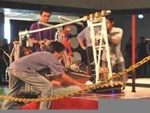 Meski terlambat hampir 1,5 jam, Running Test Kontes Robot Indonesia (KRI) dan Kontes Robot Cerdas Indonesia (KRCI) tetap berlangsung meriah, Jumat (15/5). Penonton yang mayoritas pendukung setiap tim tampak