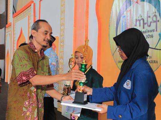 Ahmad Yazid Maulana Wachid, mahasiswa semester dua Jurusan Sistem Informasi ITS turut mengharumkan nama ITS dalam ajang MTQ MR IV Jawa Timur, Kamis (21/7). Pasalnya, Yazid berhasil membawa pulang