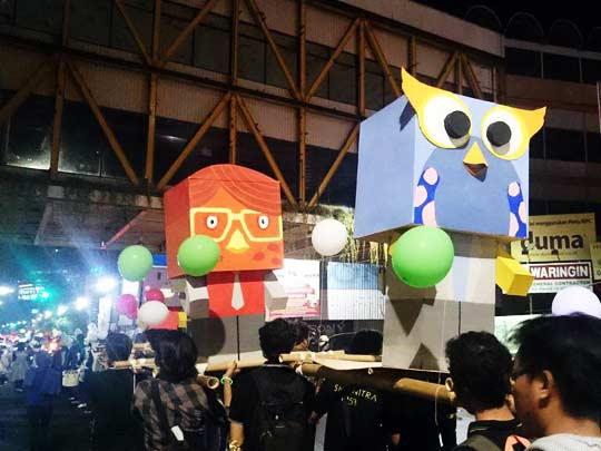 Tampak dari kejauhan, empat maskot setinggi satu setengah meter digotong sepanjang Jalan Tunjungan hingga Jalan Pemuda Surabaya. Sontak, ribuan pengguna jalan malam itu memadati area demi melihat secara jelas