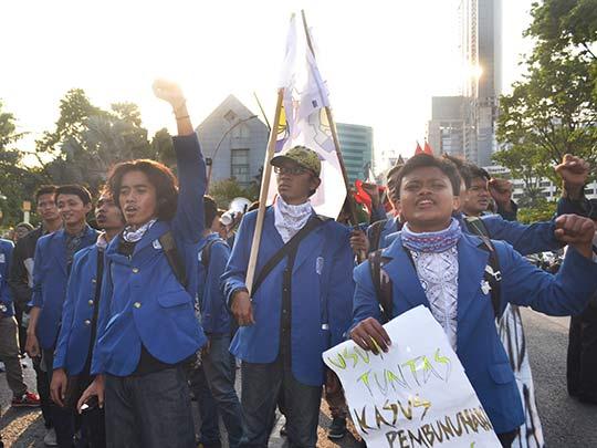 Berbalutkan pakaian serba hitam dan jas almamater, lebih dari 50 mahasiswa ITS bertolak ke Gedung Negara Grahadi, Surabaya pada Jumat (2/10). Bersama dengan lebih dari sepuluh Lembaga Swadaya Masyarakat