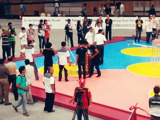 Sebelum mengikuti pertandingan Abu Robocon 2014 di India, terlebih dahulu tim robot mendapatkan kesempatan untuk melakukan running test. Running test yang dilaksanakan pada Sabtu (23/8) ini bertujuan untuk menentukan