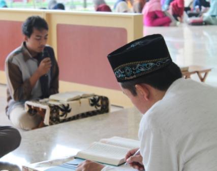 Ditemani rintik hujan yang turun perlahan, lantunan ayat Alquran yang dikombinasikan dengan lagu terdengar begitu indah. Sekumpulan mahasiswa tengah mempersiapkan diri menunggu giliran tampil. Kali ini, Forum Studi Islam