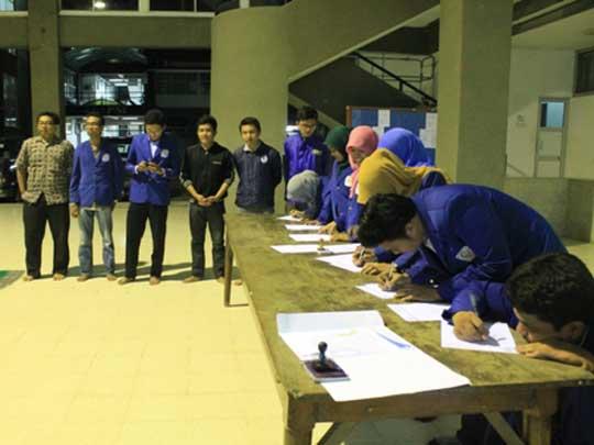 Sabtu (8/3) kampus ITS tampak berbeda dari biasanya. Terlihat sekumpulan orang lalu-lalang memakai kostum serba islami. Mulai dari sarung, jubah, hingga kopyah. Dari Jurusan Kimia, terdengar sayup-sayup lantunan Alquran