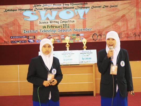 Himpunan Mahasiswa Kimia (Himka) ITS kembali mengadakan Science Writing Competition (SWOT) untuk yang keenam kalinya. Babak final SWOT 2014 pun dilaksanakan pada Minggu (16/2) di Gedung SCC ITS. Keunggulan