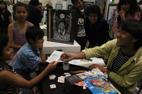 Ada pemandangan yang berbeda di mall ciputra world Sabtu (8/3). Sejak dibuka pukul 10 pagi, lantai lower ground mall tersebut dihiasi dengan instalasi boneka dari karung goni dan berbagai