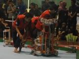 Pertarungan babak penyisihan Kontes Ronbot Nasional (KRN) terus berlanjut. Kontingen robot kampus perjuangan kategori KRSI, V-Nara dan kategori KRPAI beroda, Al-Jazari baru saja menyelesaikan gilirannya masing-masing. Meskipun begitu, mereka