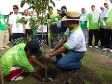 Rektor ITS, Prof Dr Ir Tri Yogi Yuwono DEA memimpin aksi tanam pohon, Jumat (23/12). Kegiatan penghijauan kampus ini merupakan salah satu dari serangkaian acara Gugur Gunung (G2) sesi