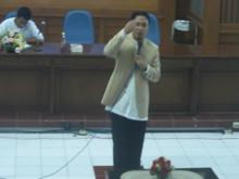 Puluhan orang ribut saling berbicara. Semuanya memegang pulpen dan kertas di tangan. Mereka saling menanyakan identitas masing-masing. Seorang lelaki berdiri di depan ruangan, diam menyaksikan.