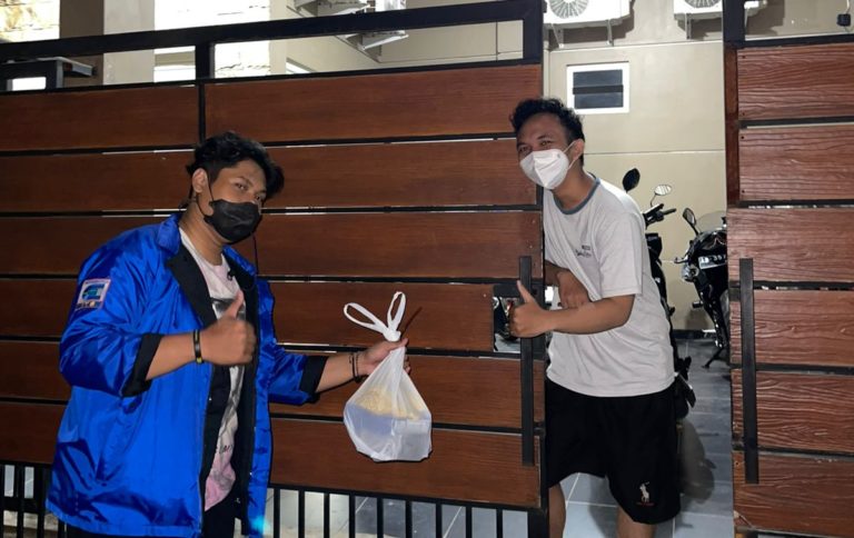 Salah satu Satgas Covid HMTC ketika membagikan logistik pada Rabu (16/02). Kampus ITS, ITS News – Dalam rangka memperketat protokol kesehatan (prokes) di lingkup Departemen Teknik Informatika Institut Teknologi