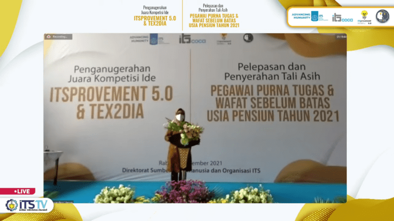 Kampus ITS, ITS News – Direktorat Sumber Daya Manusia dan Organisasi (SDMO) Institut Teknologi Sepuluh Nopember (ITS) menggelar acara Penganugerahan Juara Kompetisi Ide ITSProvement 5.0 dan Tex2dia, Rabu (15/12).