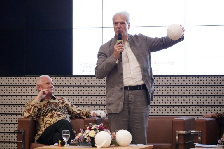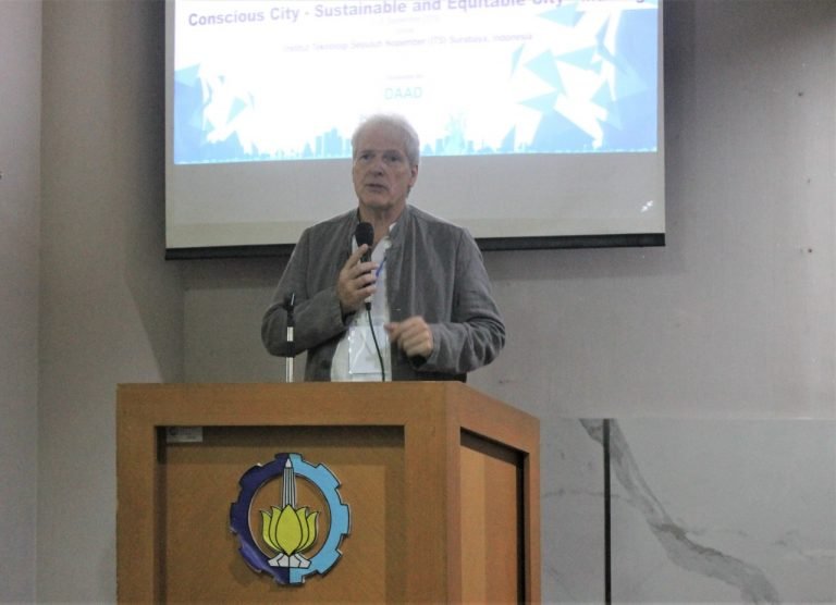 Prof Raoul Bunschoten, pakar pembangunan berkelanjutan dari TU Berlin saat menyampaikan gagasan Conscious City Kampus ITS, ITS News – Institut Teknologi Sepuluh Nopember (ITS) kembali mengambil peran dalam pembangunan