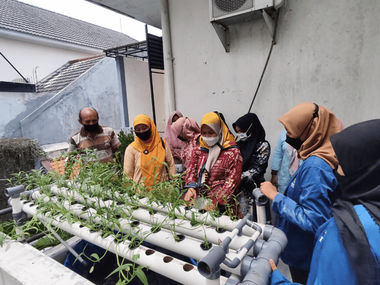 Mitra kader Pemberdayaan Kesejahteraan Keluarga (PKK) RW 008 Keputih melihat dan menanyakan secara langsung perihal seputar akuaponik Surabaya, ITS News — Akuaponik merupakan salah satu metode pertanian yang berpotensi