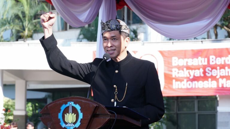 Kampus ITS, ITS News — Dalam rangka memperingati Dirgahayu ke-80 Republik Indonesia, Institut Teknologi Sepuluh Nopember (ITS) menggelar upacara bendera yang diikuti oleh seluruh elemen sivitas ITS. Upacara khidmat