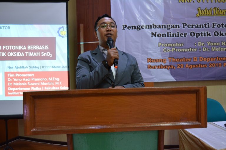 Kampus ITS, ITS News – Mengacu pada kemajuan teknologi saat ini, khususnya dalam dalam bidang fotonika, Nur Abdillah Siddiq, doktor Fisika program Pendidikan Magister Menuju Doktor untuk Sarjana Unggul