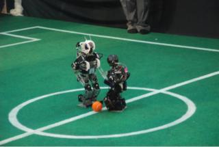 SURYA Online, SURABAYA - Tim robot RI NHO dari ITS dan Rolpens dari Politeknik Elektronika Negeri Surabaya (PENS) berebut gelar juara kontes robot indonesia (KRI) Regional IV di Gedung