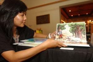 Sekurangnya 50 karya yang terdiri dari berbagai karya visual para mahasiswa Desain Komunikasi Visual (DKV) Institut Teknologi 10 Nopember Surabaya (ITS), Kamis (07/01) dipamerkan dibalai Sawunggaling, kompleks Taman Budaya