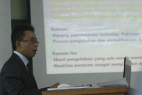 Kepala Dinas Pekerjaan Umum Pemkab Banyuwangi Guntur Priambodo terlihat plong setelah enam penguji memberikan predikat lulus dengan pujian dalam sidang doktor di Bidang Keahlian Teknik Lingkungan, Fakultas Teknik Sipil