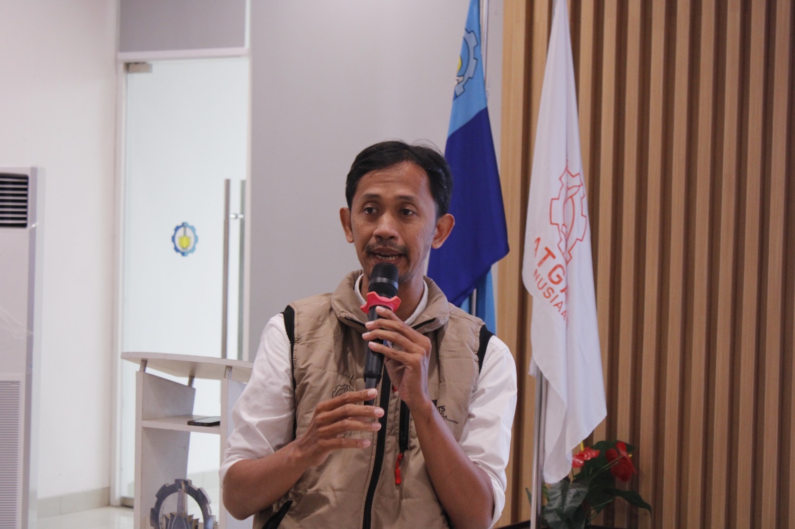 Pembekalan yang disampaikan oleh dr Faizal Mahdi, dosen Prodi Kedokteran ITS, mengenai keselamatan lapangan dan kesehatan dasar kepada para mahasiswa relawan ITS