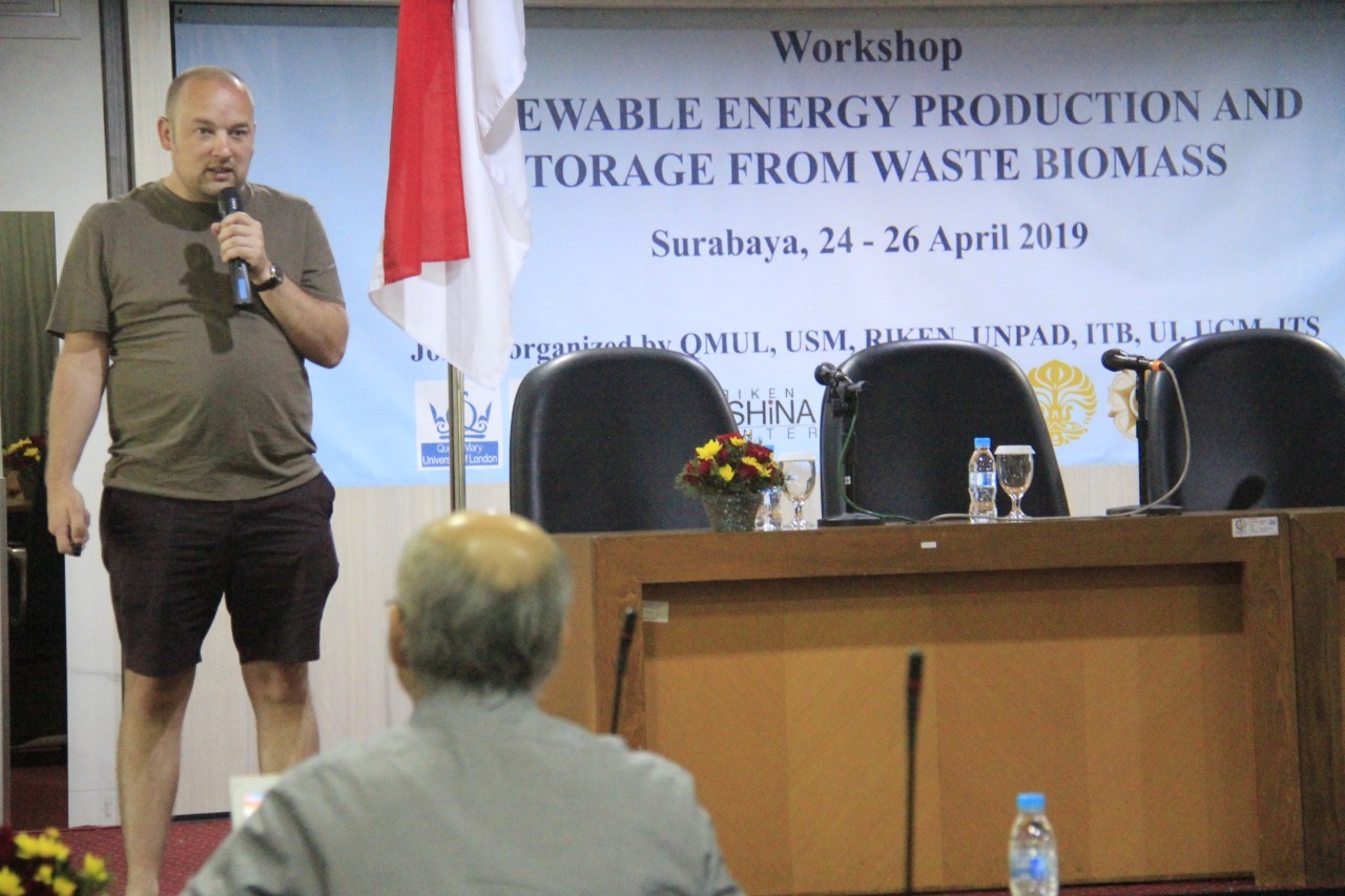 Located at the Main Seminar Room of the ITS Rectorate Building, this event was also attended by Prof. Alan Drew from QMUL as the project leader of GCRF. This workshop presents researchers from the UK, Indonesia, and Malaysia to conduct international collaborative research on the production of renewable energy and energy storage from biomass waste.
