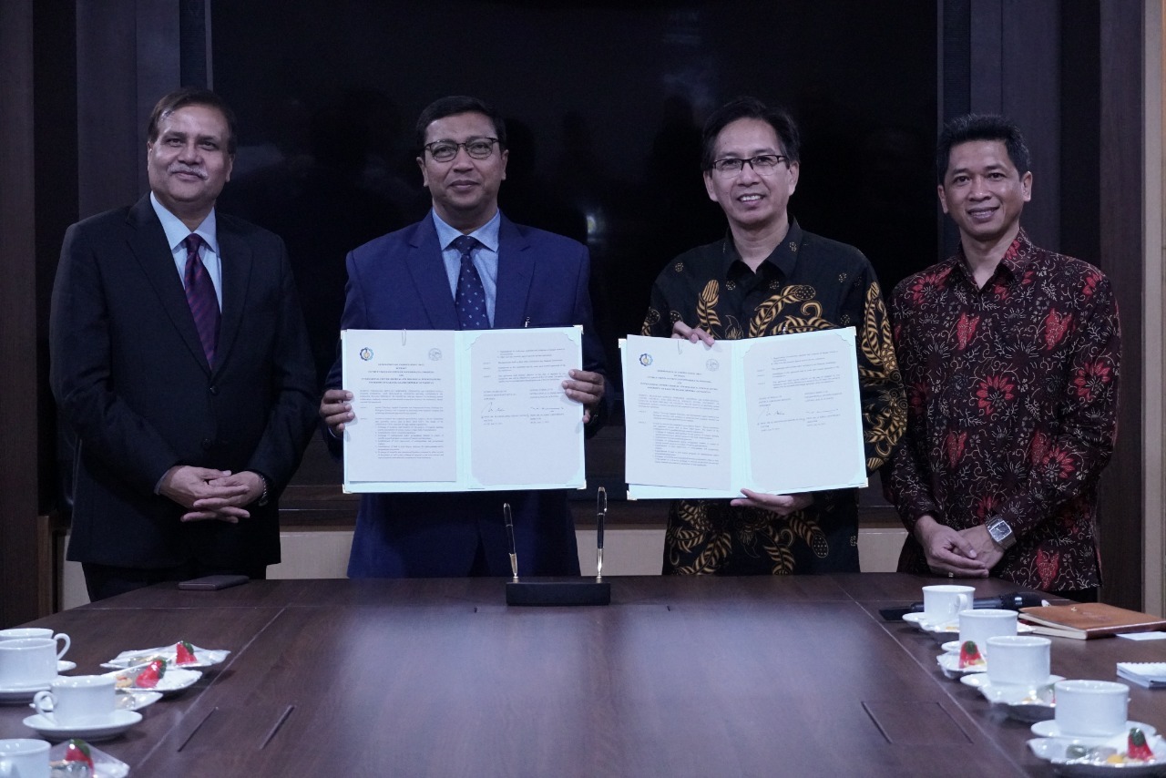 (from left to right) HE Abdul Salik Khan, Muhammad Iqbal Choudary, Prof. Mochamad Ashari and Bambang Pramujati who showed the MoU that had been signed together.