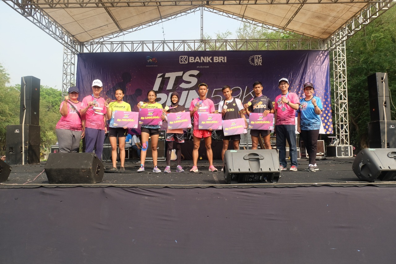 Para juara ITS Run 5.9K usai menerima hadiah secara simbolis dari Rektor ITS Prof Mochamad Ashari