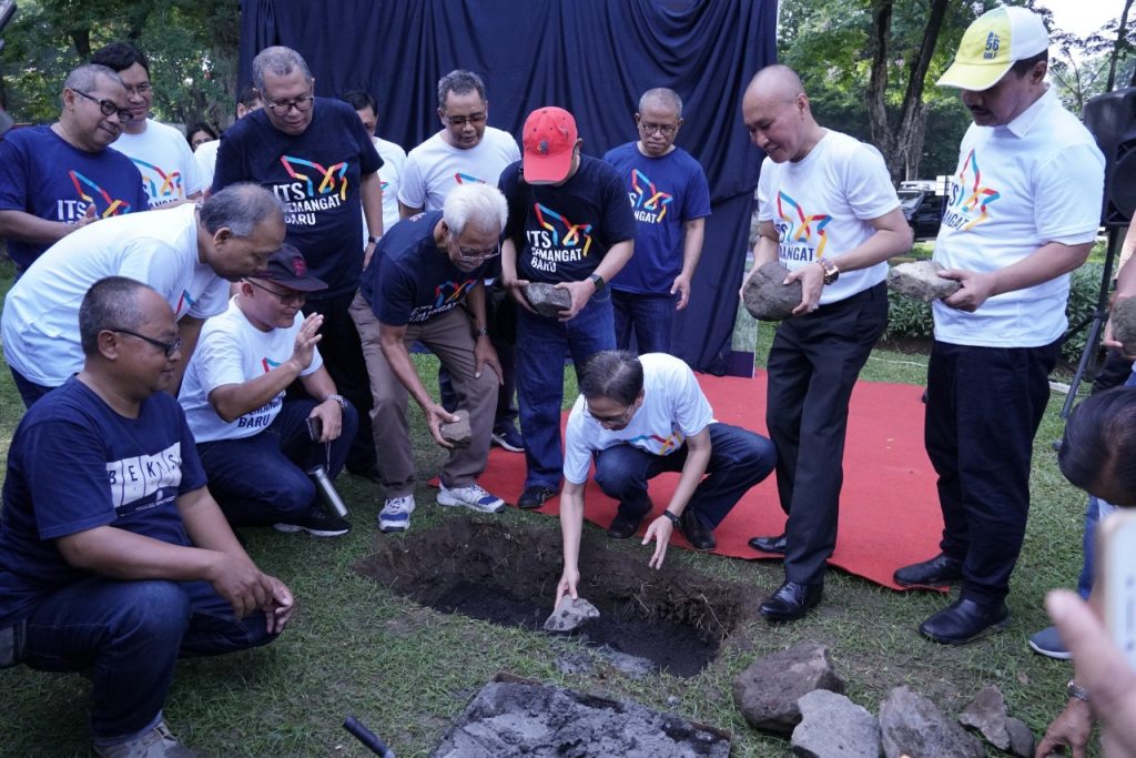 ITS rector Prof. Mochamad Ashari with ITS IKA representative and Executive Board put the first stone to inaugurate the development of ITS Synchro selfie spot