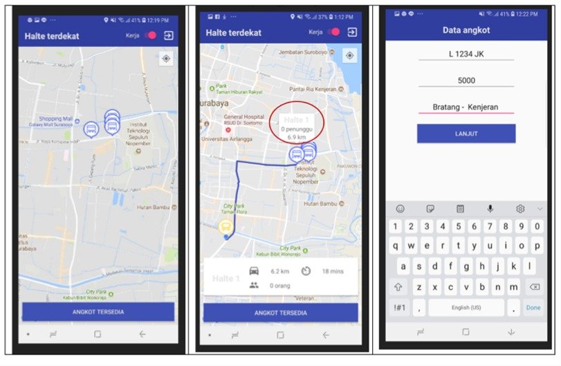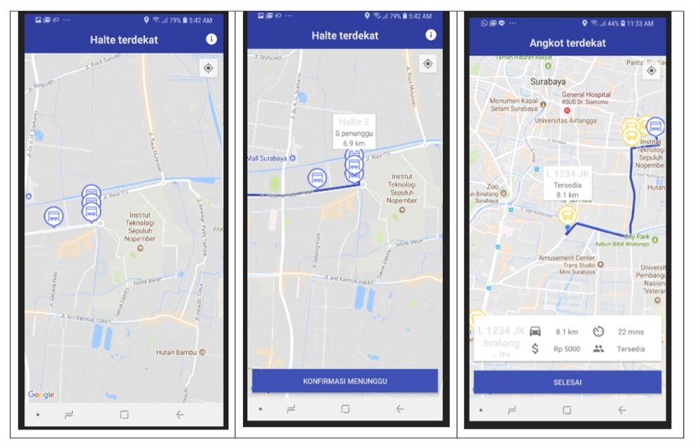 The application that has been socialized to the representatives of users and public transport drivers Surabaya has been working together with the Transportation office of Surabaya. Erma and the team hope that in the future there will be cooperation between ITS, Surabaya City Transportation Office, Google (as an API service provider), as well as telecommunication provider as a data package provider so that this system can be enjoyed by the driver Angkot with a very affordable cost.