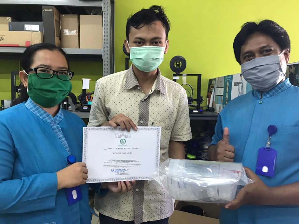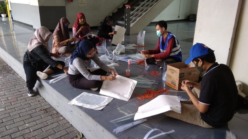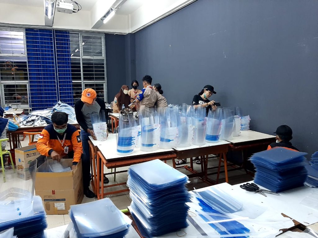 ITS Campus, ITS News – The occurrence of the non-natural world pandemic, Covid-19, caused the sharp increase in the demand for Alat Pelindung Diri (APD) or Personal Protective Equipment (PPE) for medical activities. In understanding and aid of that condition, the Sepuluh Nopember Institute of Technology (ITS) successfully produced more than 70 thousand face shields, in which the 33 thousand of it have been administered to 13 provinces in Indonesia.