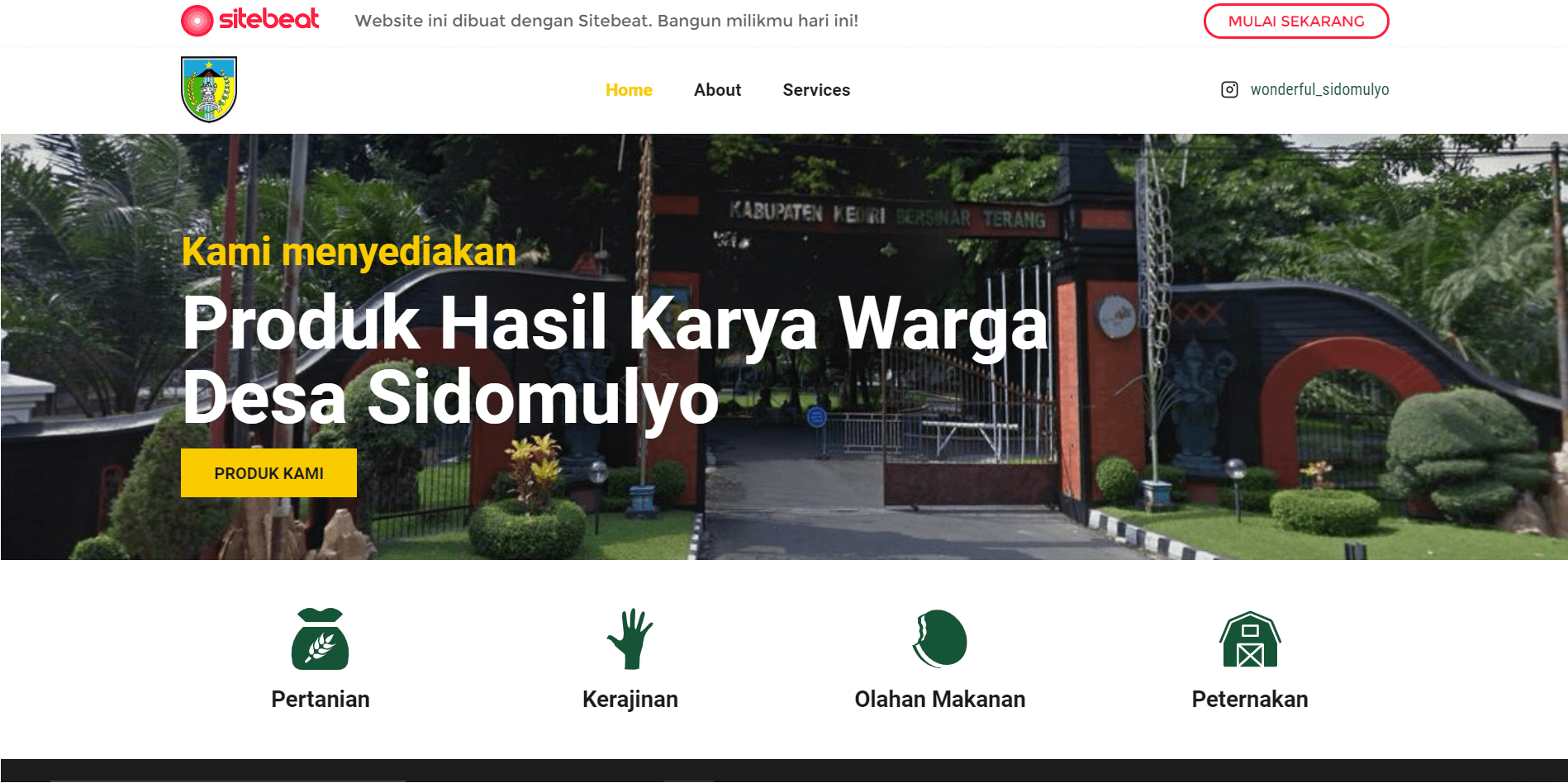 The homepage of the Sidomulyo Village website as a product of ITS Student Study Service program