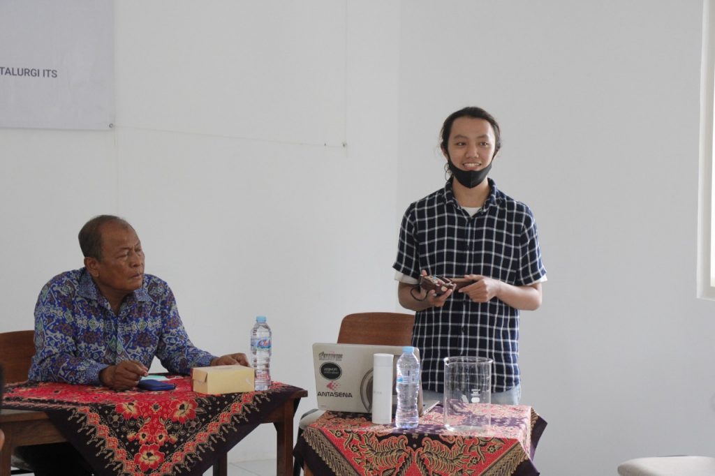 A student from the ITS Material and Metallurgical Engineering Department, Adzon Nugraha Rizky Pratama, when presenting about sound-based thermometers