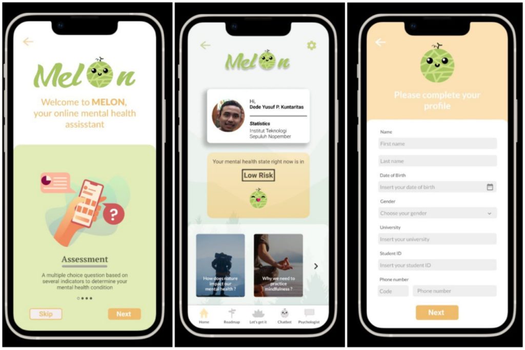 Based on this, Miftah and his team designed this mental health service application. Through the MELON application, people with mental disorders can consult online comfortably. “Users can also conduct an initial examination of their mental health, then MELON will provide suggestions to improve their mental condition,” said Miftah.