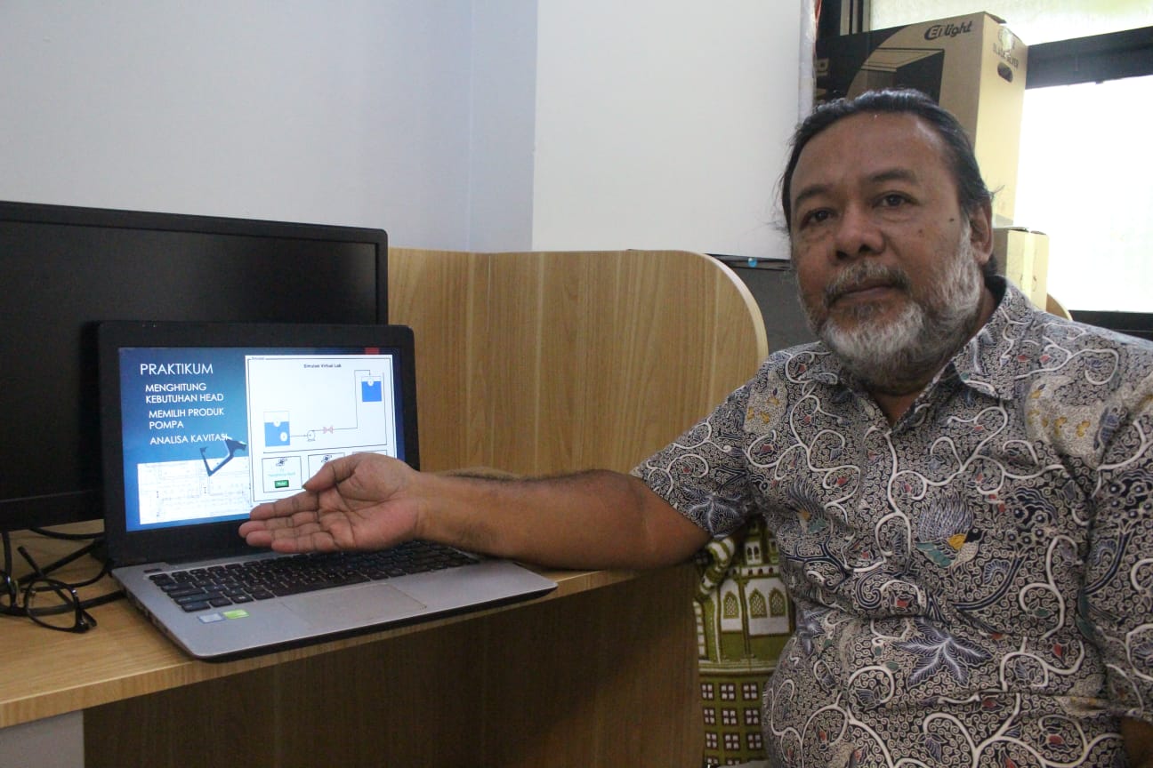 The Mechanical Engineering Lecturer ITS, Nur Ikhwan, S.T., M.Eng., shows the software for pump sizing simulation that he designed