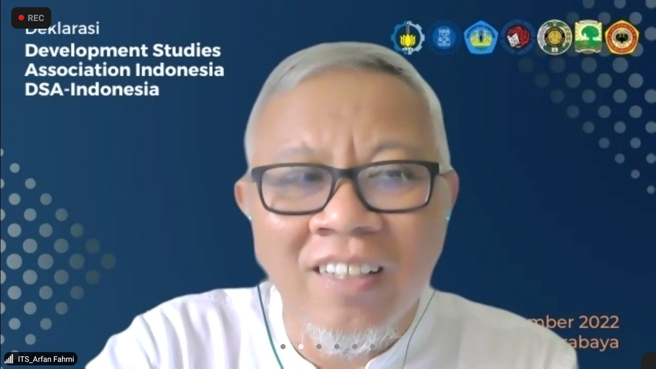 The Head of the Development Studies Association – Indonesia (DSA-Indonesia) who is also the Head of the ITS Development Studies Department Dr. Arfan Fahmi SS MPd, when opening the virtual declaration