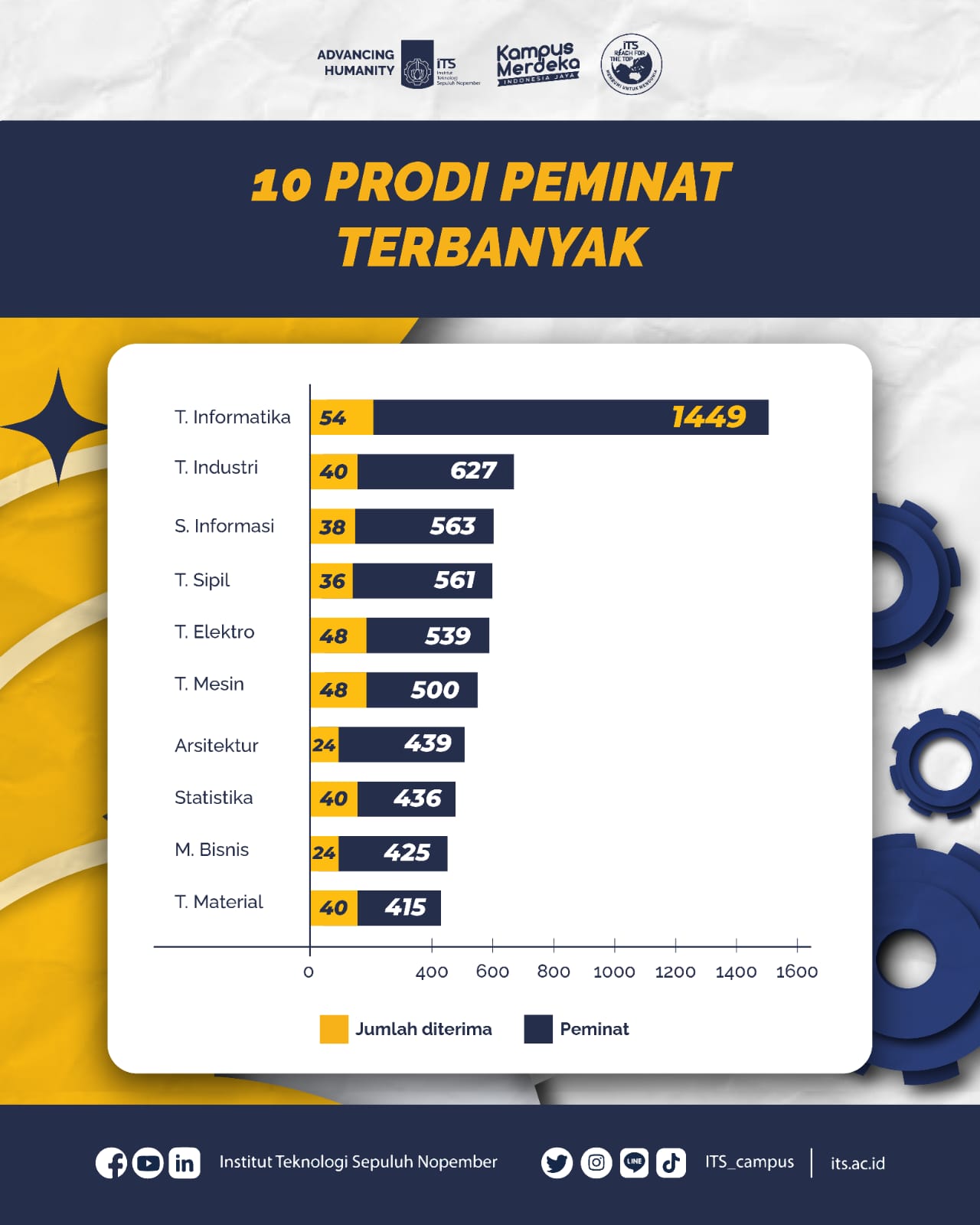 The ITS Mechanical Engineering Department lecturer revealed that students from East Java Province dominated the distribution of ITS SNBP applicants. Furthermore, Unggul revealed that ITS for the Department of Informatics Engineering ranked first with the most enthusiasts, 1,449 enthusiasts. This figure was followed by the Department of Engineering and Industrial Systems, with as many as 627 enthusiasts, and the Department of Information Systems, with as many as 563 enthusiasts.