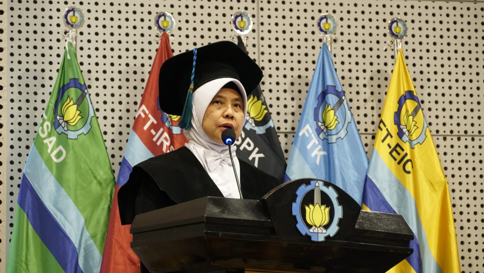 Prof Dr Trihastuti Agustinah ST MT when presenting the results of her scientific oration entitled Robotic Control Systems: Challenges and Opportunities