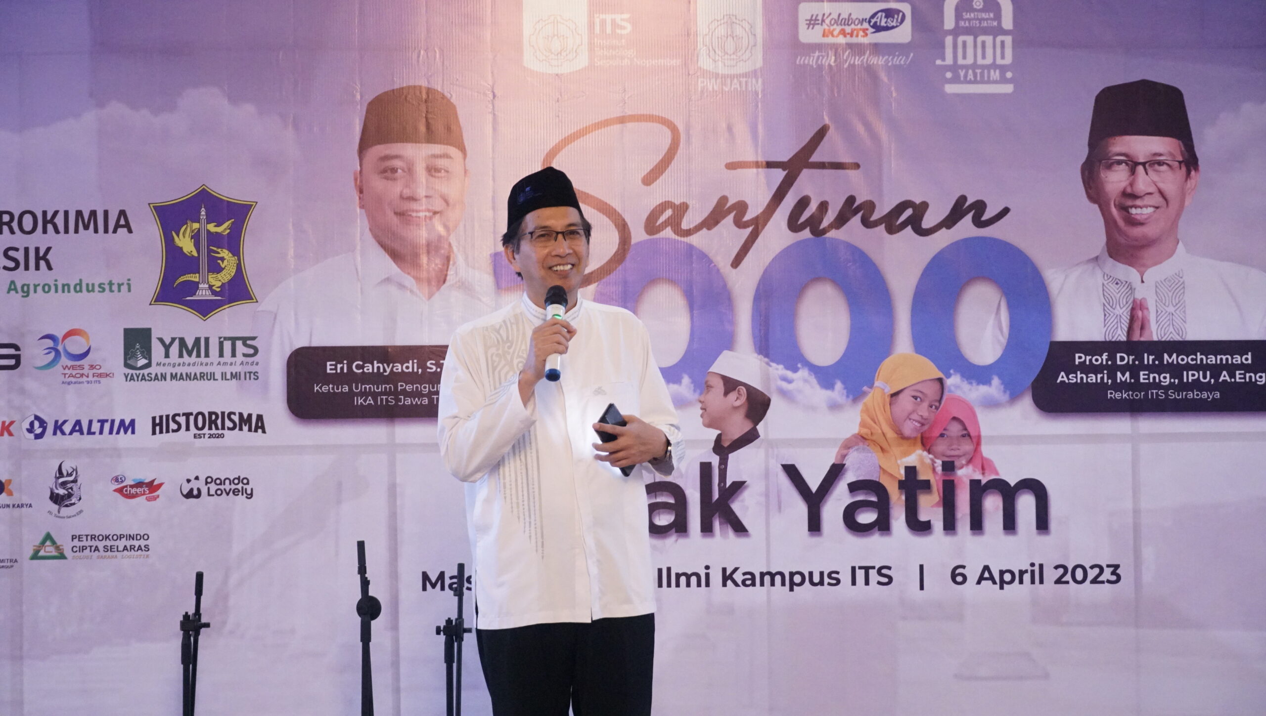 ITS Rector Prof. Dr. Ir Mochamad Ashari MEng during his speech and message to the orphans in the 1,000 Orphans Charity event.
