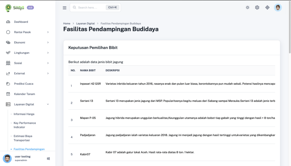 In addition to the cultivation assistance feature, there are also other features that can facilitate users in improving corn quality management. These features are supported by modeling methods using valid data. In the future, Erma hopes that Silaja can be applied to increase the value of maize supply chain performance in East Java Province.